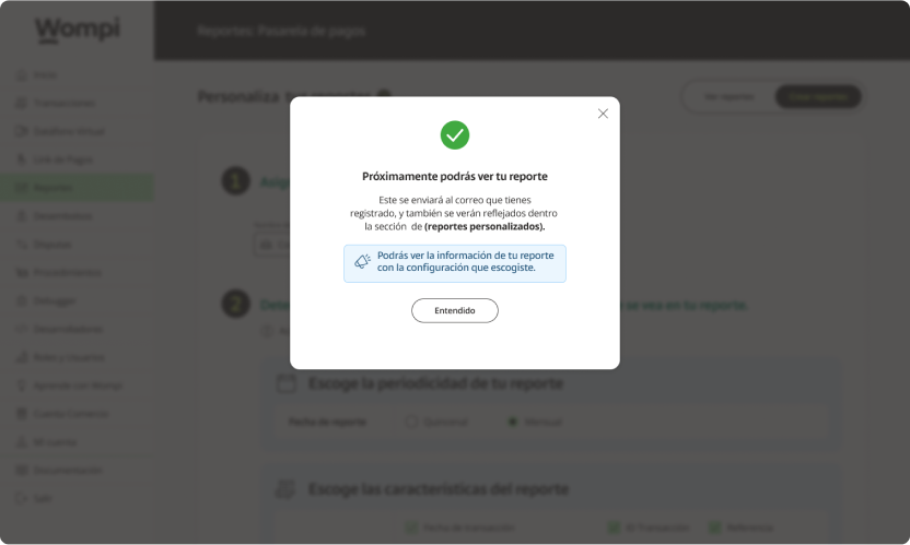 Subsequently, a message will appear confirming the creation of the report.
