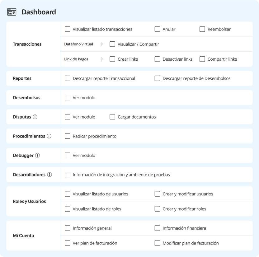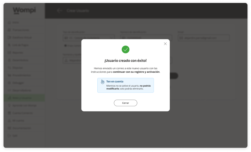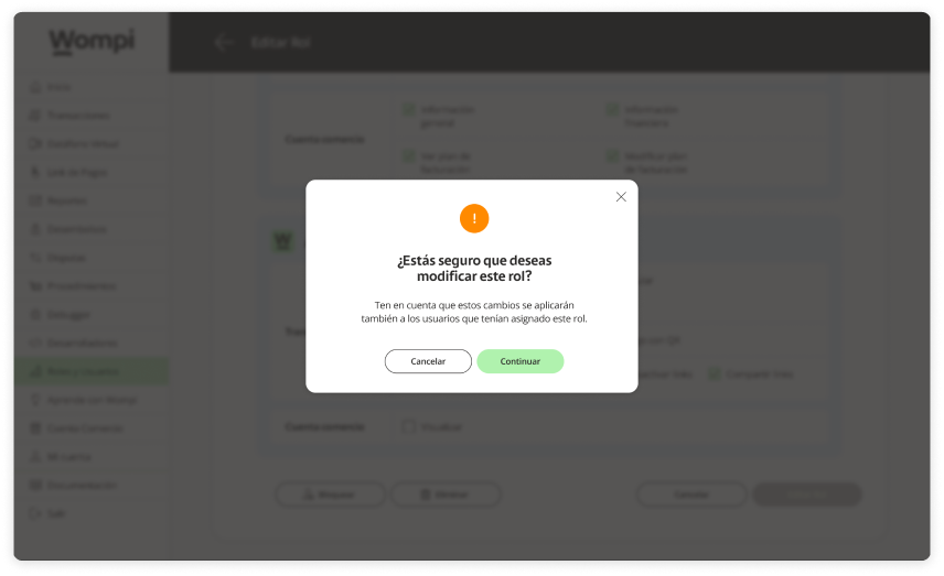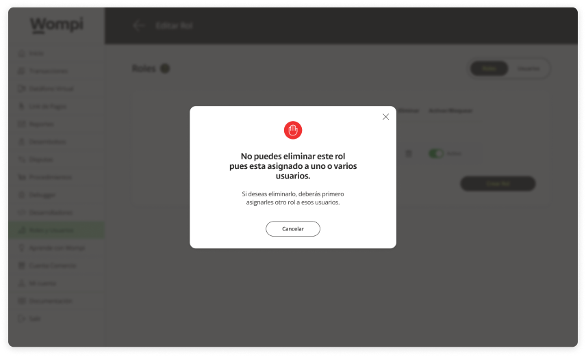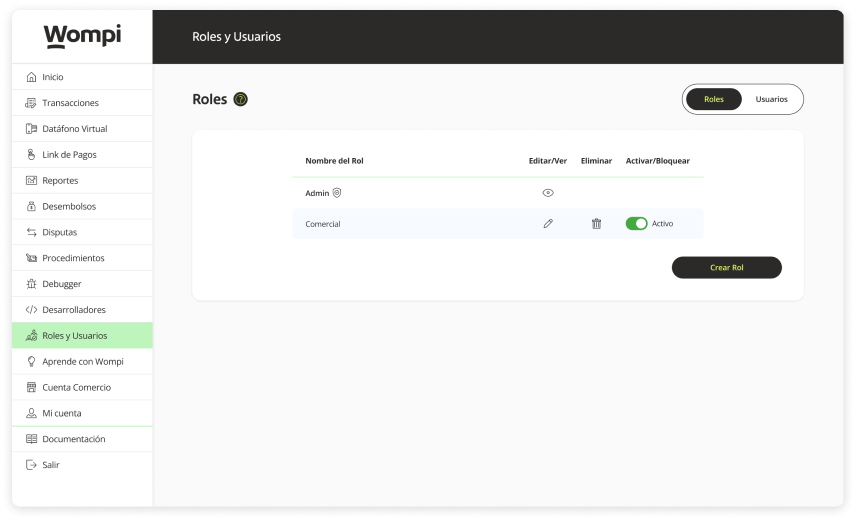 You can create roles to assign to a user and determine the permissions and actions they will have to help you manage your Wompi account.